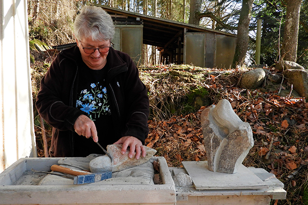 En af de lokale udstillere, man kan møde, er stenkunstner Karen Flarup Nielsen, Ålum. Privatfoto.
