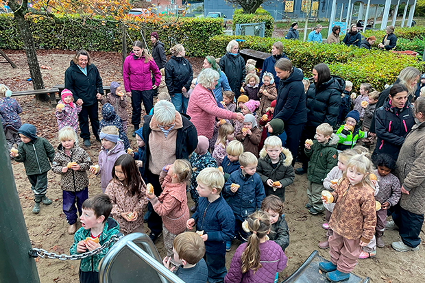 Den flotte indsamling blev fejret på legepladsen ved Børnehuset i Assentoft. Privatfoto.