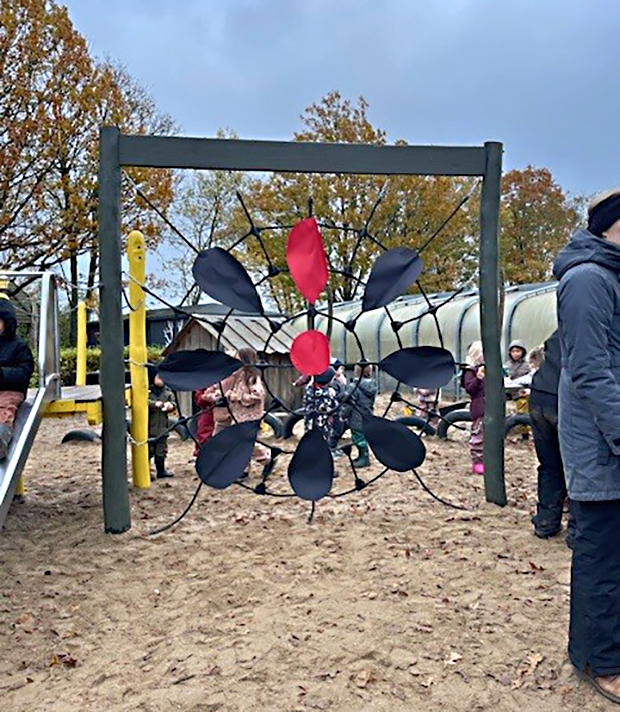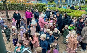 Den flotte indsamling blev fejret på legepladsen ved Børnehuset i Assentoft. Privatfoto.