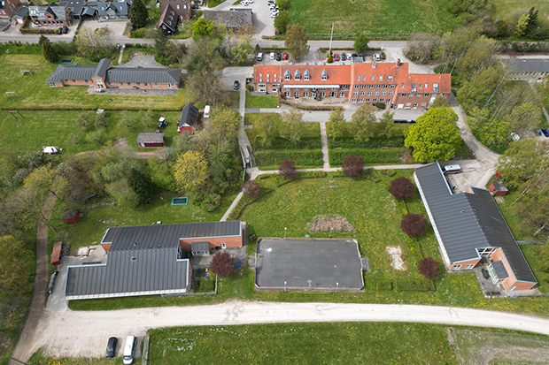 Trekløverskolen, aflastningstilbuddet Spiren og botilbuddet Udsigten ligger samlet på Støvringgårdvej i Mellerup – med fysisk nærhed, der gør det naturligt at dele faciliteter på tværs. Foto: Randers Kommune.