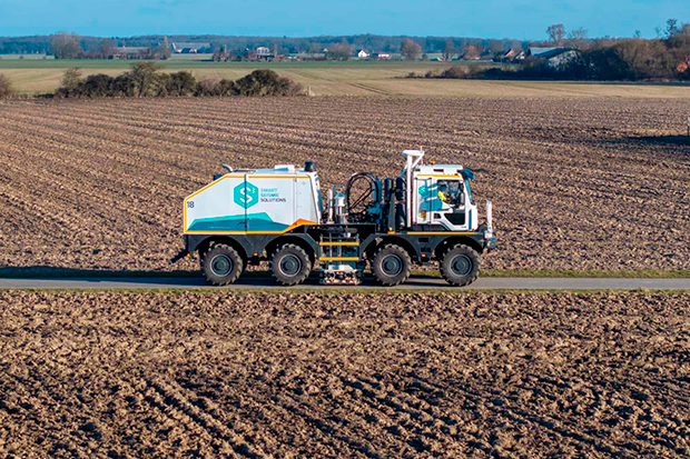 I januar og februar vil man kunne spotte den karakteristiske vibrationslastbil i et stort område mellem Randers og Hobro. Pressefoto: Guillaume ROBERT-FAMY.