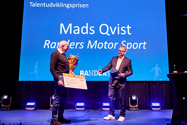 - Formand for Randers Motorsport Jan Hvam modtog på vegne Mads Qvist Talentudviklingsprisen, der uddeles af Randers Talent & Elite. Prisen blev overrakt af Erik Bo Andersen, formand for Sundheds-, Idræts- og Kulturudvalget og Elitekoordineringsudvalget. Foto: Jakob Lerche Fotografi.