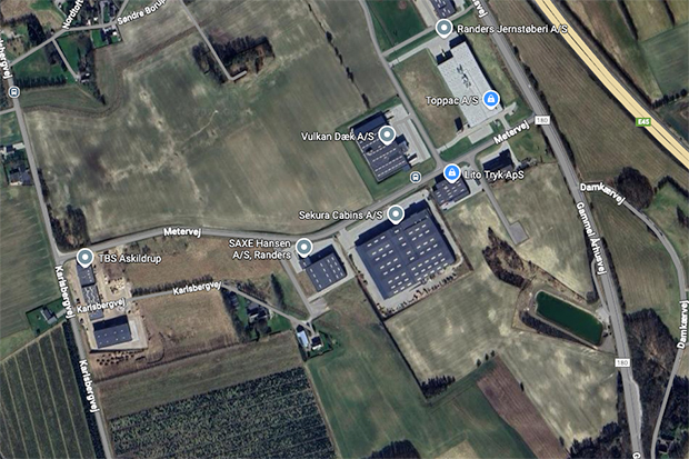 Snart får virksomhederne i Industriområdet ved Sdr. Borup og E45 selskab af bygge- og anlægsvirksomheden M.J. Eriksson. Foto: Google Maps.