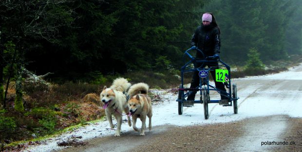 Slædehunde trænes blandt andet med specialbyggede vogne. Der kan hurtigt komme meget fart på, så det er med at have styr på hundene.